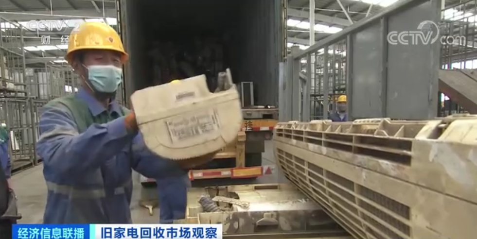 在河北唐山的一家拆解厂,记者看到,一车从北京运来的废旧家电正在卸货,有序地进入到拆解环节。