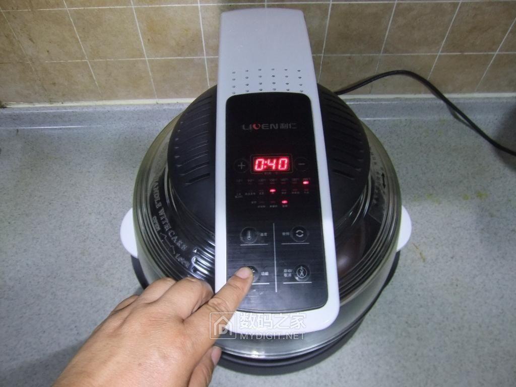 烘烤方式设置完毕,按下“启动”按键,机器正常工作。不过,光线比较强,看起来有些刺眼: