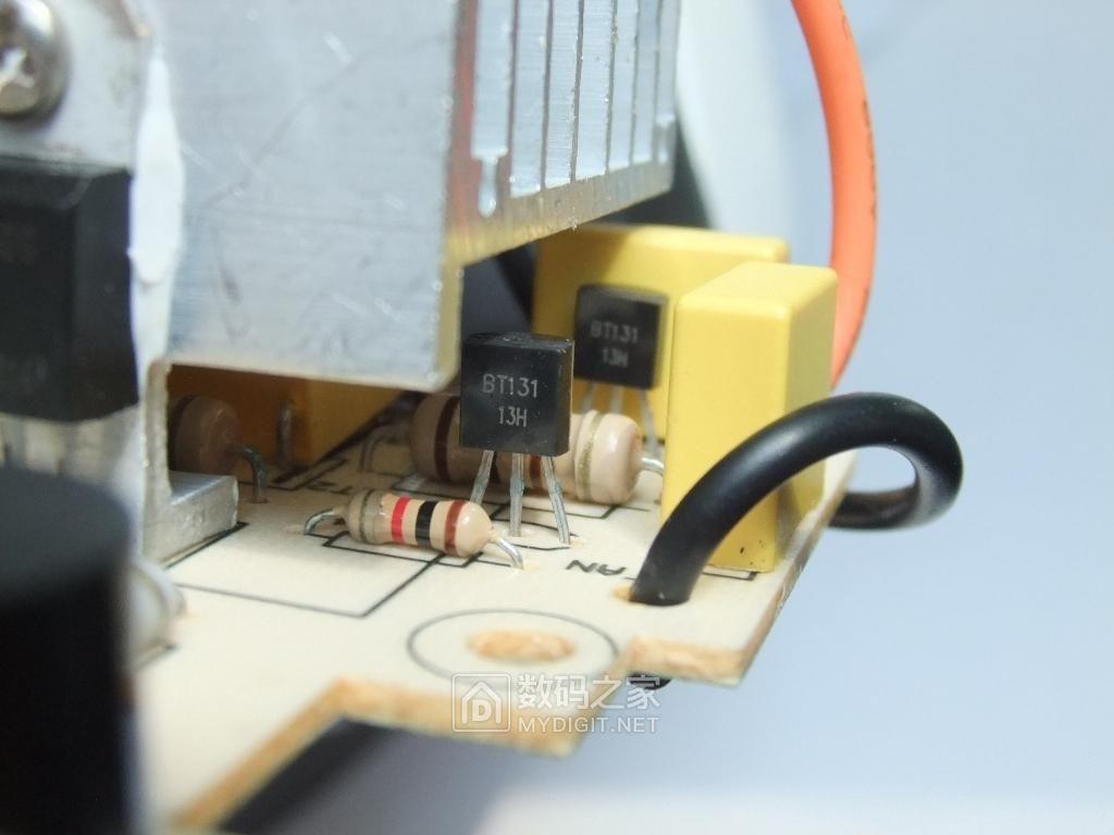 在散热器旁边,有两只小功率双向可控硅,型号BT31(1A/600V ),分别是风机、烤架旋转电机的驱动器: