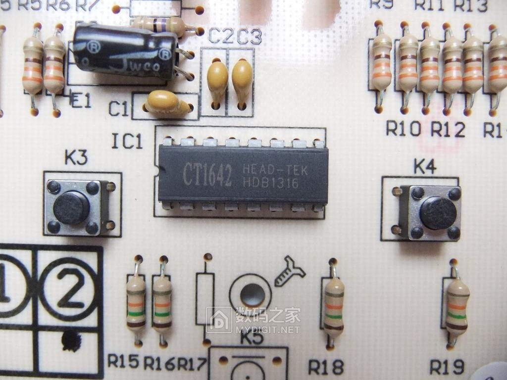 电路板上的IC1是LED数码管驱动控制集成电路,型号CT1642: