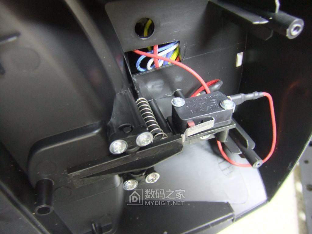 转轴处的微动开关(翻盖提手开闭时,触点断开或闭合):