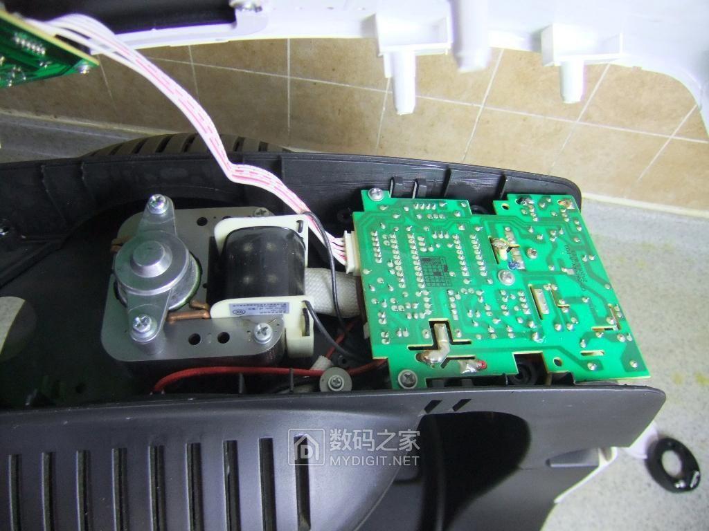 卸完所有的固定螺丝,才能将翻盖提手分离开,看见内部的电路板: