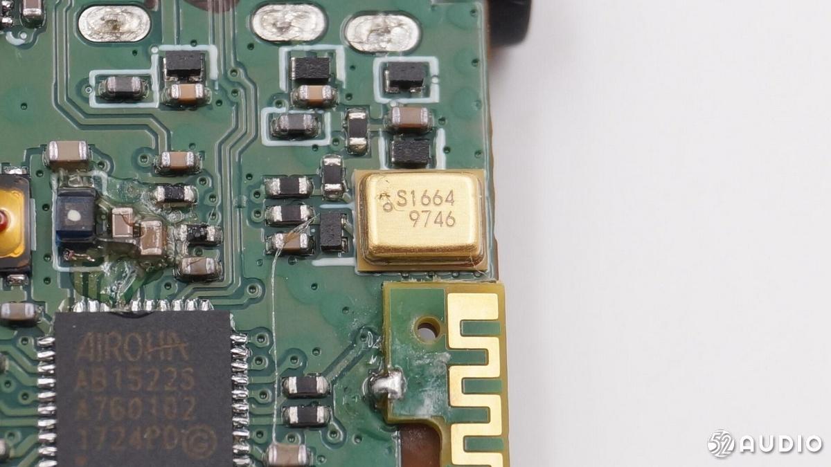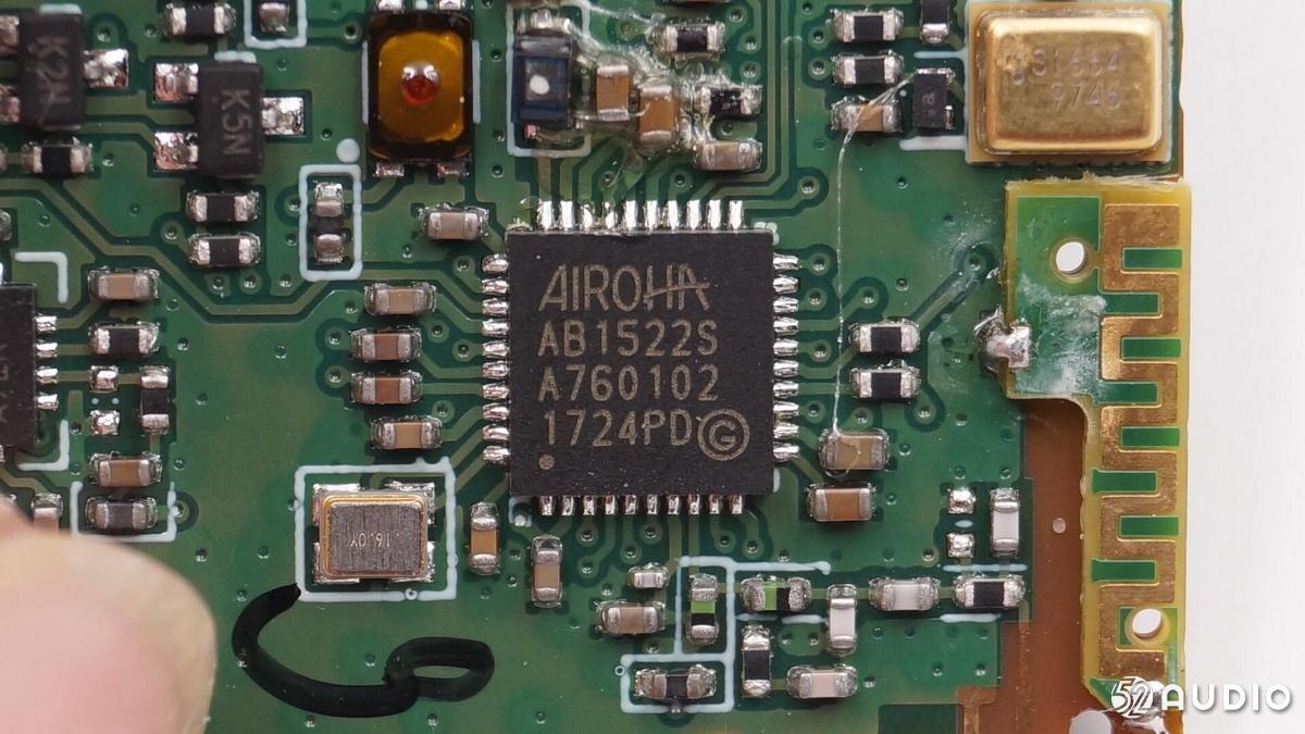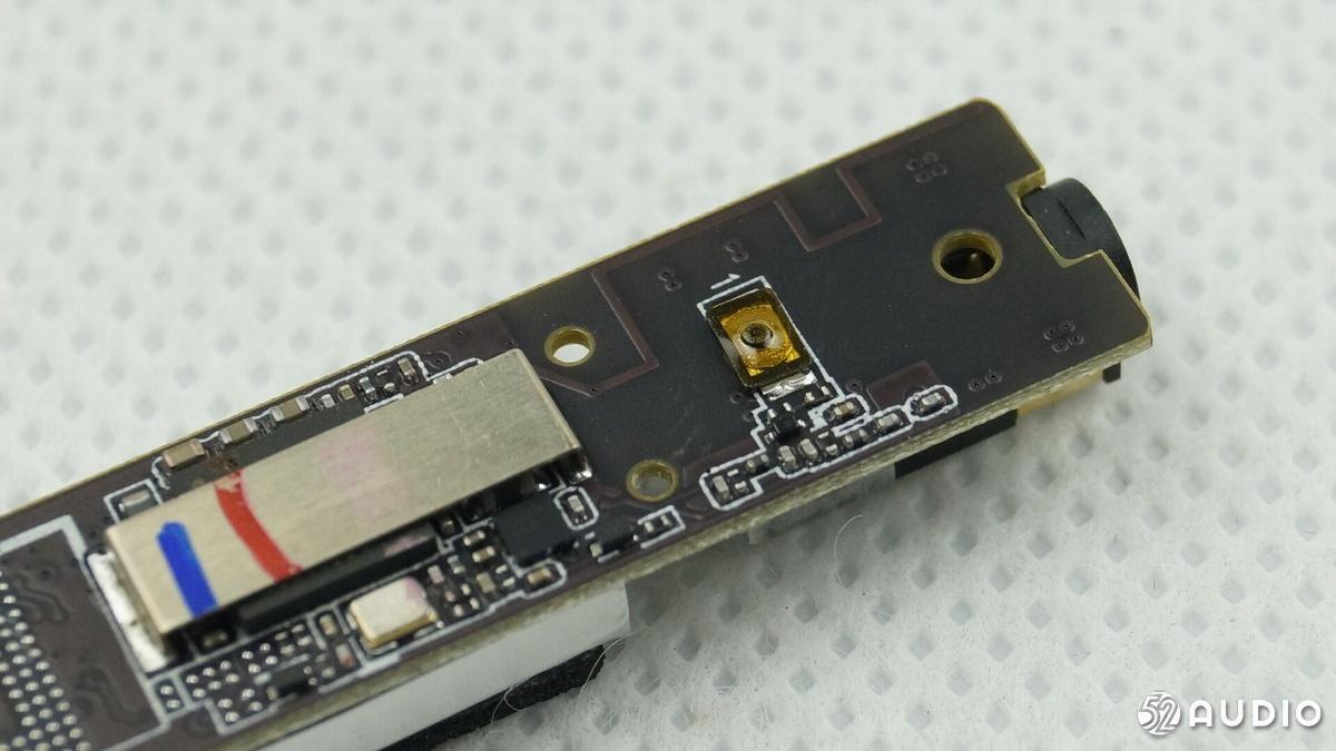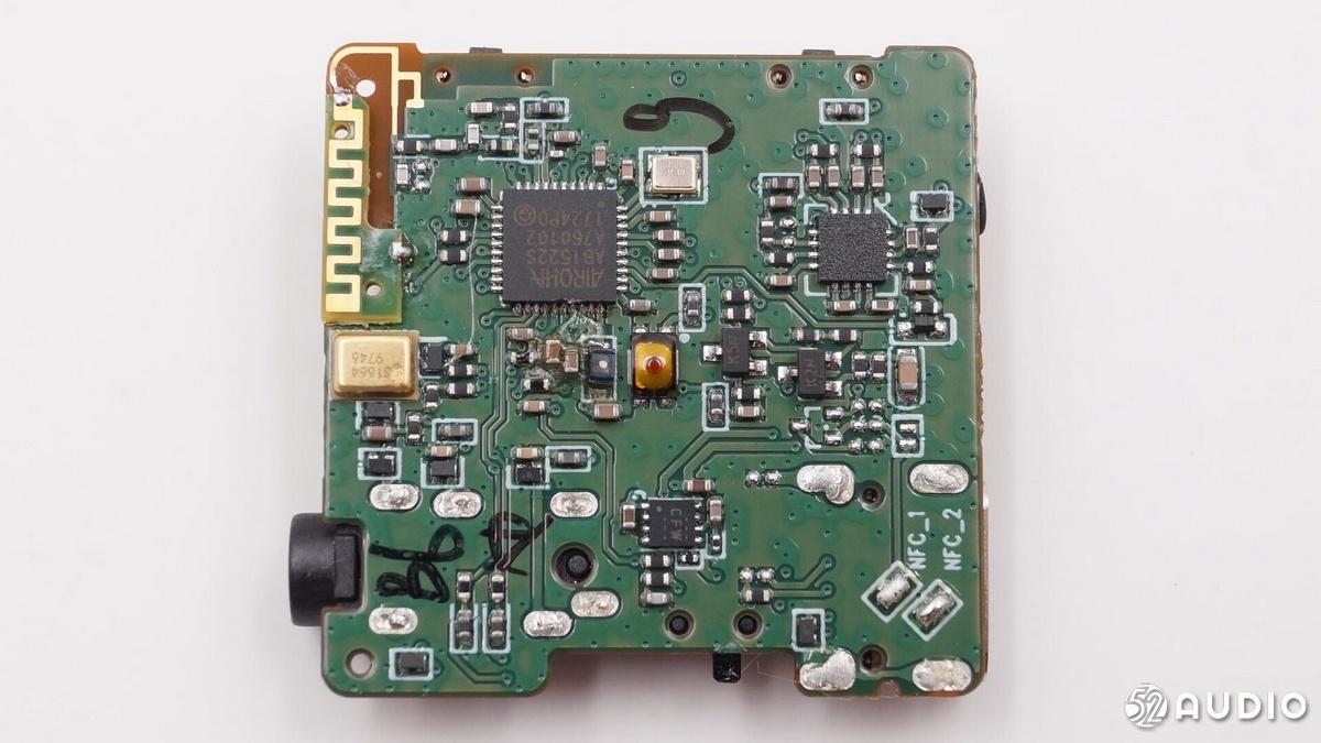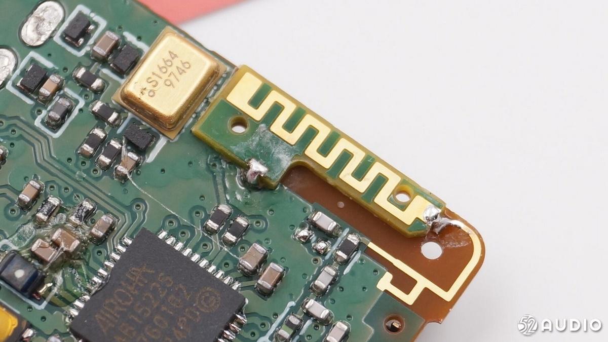 电路板正面,据我爱音频网拆解分析,左上角是蓝牙天线,以小板单独焊接。