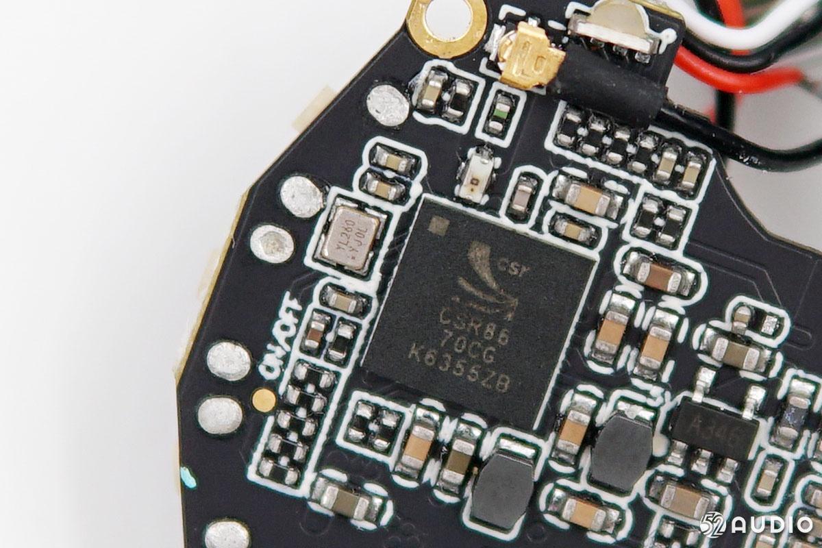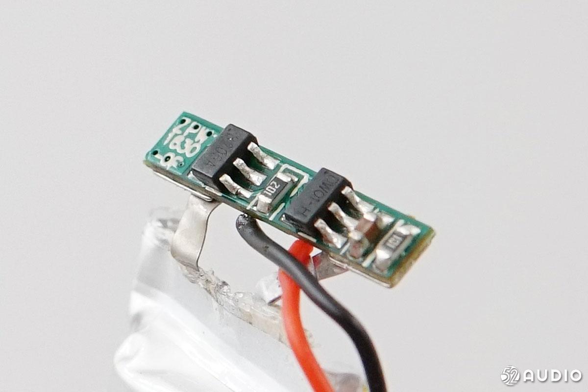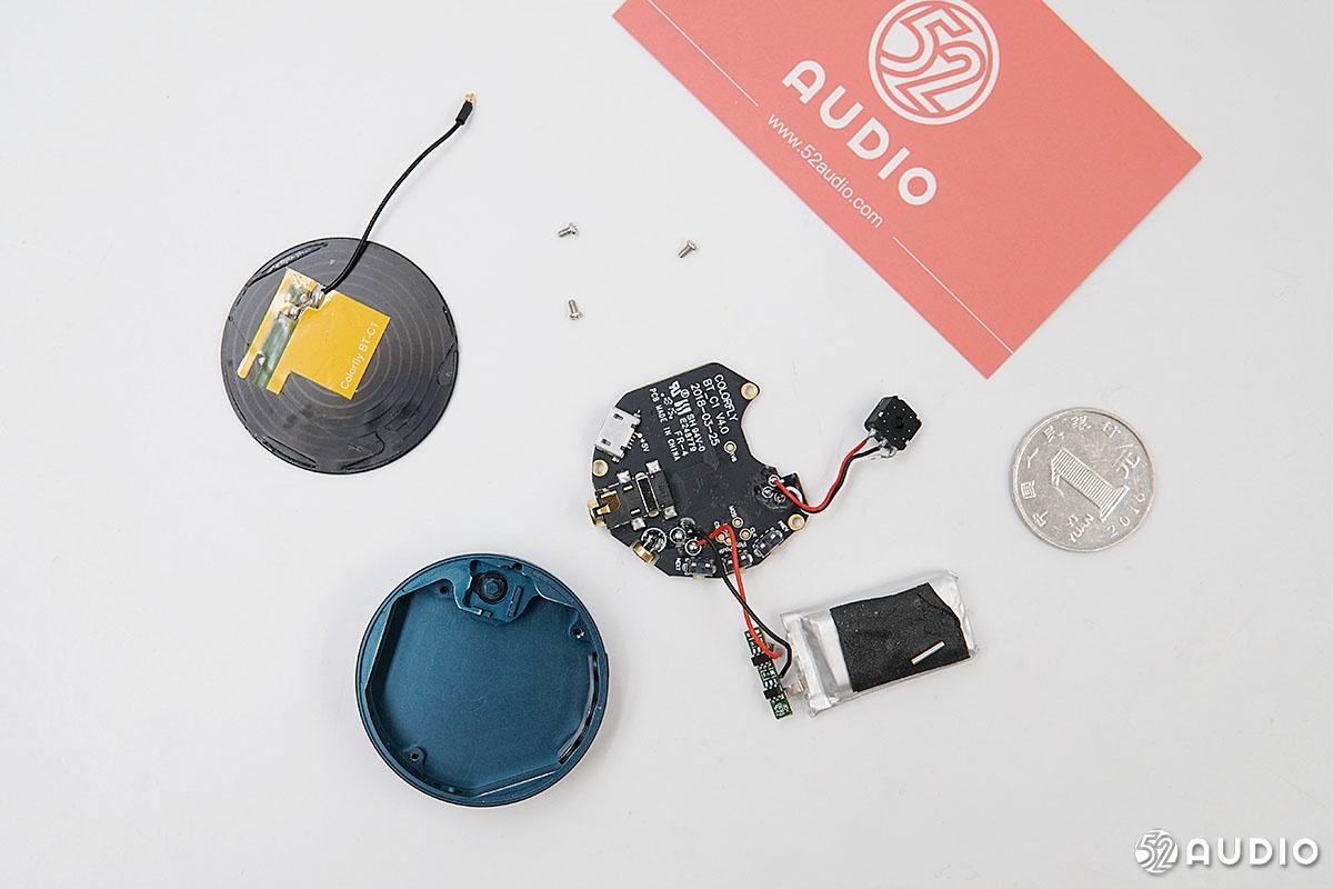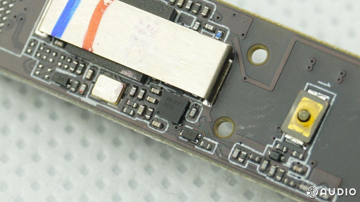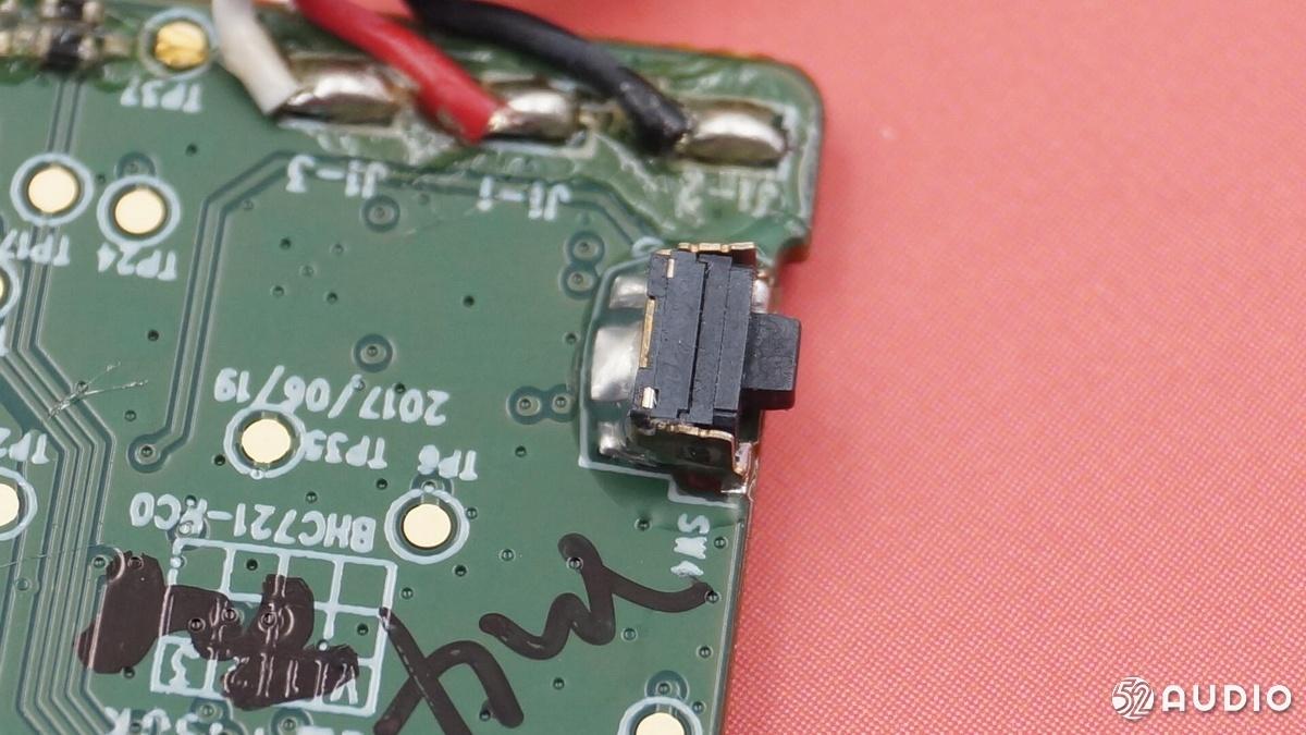 电路板正面,据我爱音频网拆解分析,左上角是蓝牙天线,以小板单独焊接。
