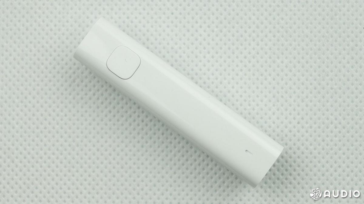 蓝牙接收器身材纤细,单从外观来看会误以为是普通的单声道蓝牙耳机。机身上放方形按键为多功能按键,通过按键长短与次数切换开/关机、连接、接听来电、音乐播放功能,机身下方为工作状态指示灯。