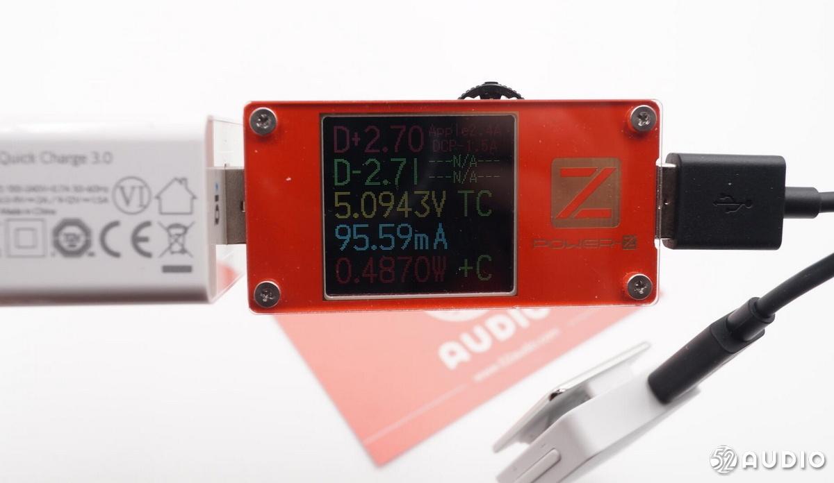 我爱音频网使用ChargerLAB POWER-Z KT001对SONY SBH24的蓝牙接收器进行充电测试,测得充电器输出为5.09V 0.095A。