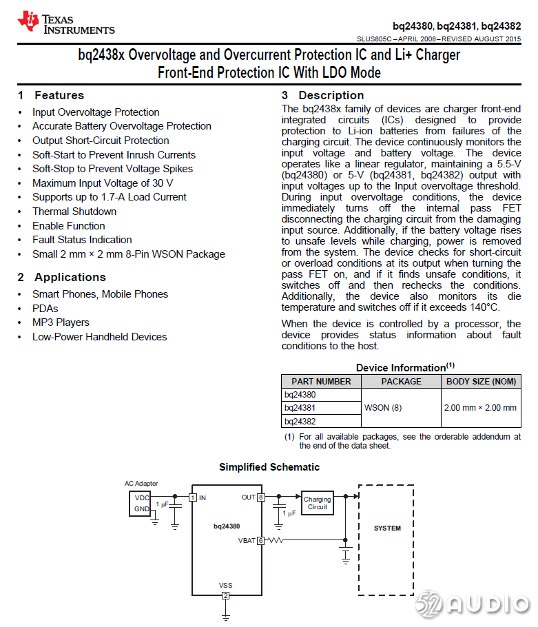 TI BQ24381 过压/过流保护 IC 和锂离子充电器前端保护 IC,具有 LDO 模式。