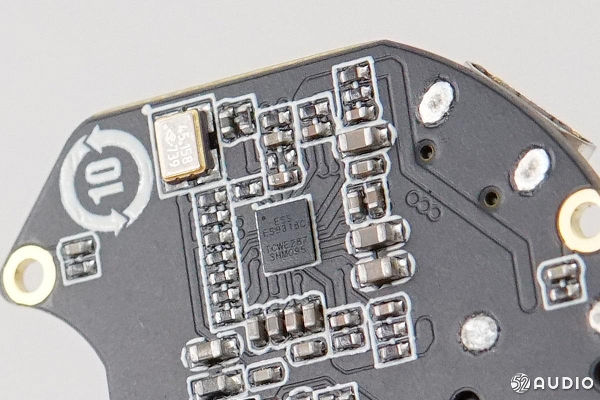 ESS ES9318 DAC,集成耳机驱动器,可以直接驱动耳机。DAC周围布满了电容。这款DAC被多款高端HiFi便携设备采用。