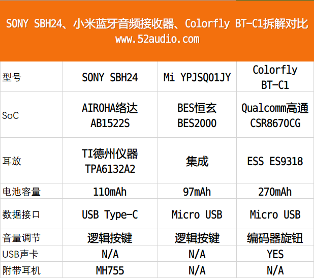 三款蓝牙音频接收器拆解:索尼SBH24、小米YPJSQ01JY、七彩虹BTC1