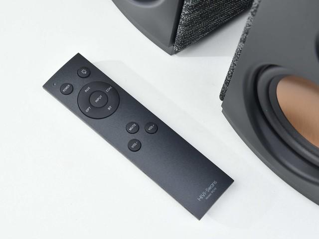 惠威OS-10不光在外观设计上面突破了传统,在音箱的操作方式上也采用了全新的设计。通常在我们的印象之中,惠威的音箱都会采用旋钮式的操作方式。惠威OS-10考虑到近场使用环境,这款音箱在主音箱上方特别设计了一个支持触控选择的操作面板,从左至右分别是开机/待机按钮、输入通道信号选择、音量增加、音量减小和一个静音按键。在近场聆听时,操作起来更加的方便,并且这样的操作方式更加直观,更加容易上手。除了触控方式之外,随包装还附赠有全功能遥控器,可以满足远距离听音时的操作需求。惠威OS-10的操作方式十分多样化,可以满足绝大多数的使用需求。