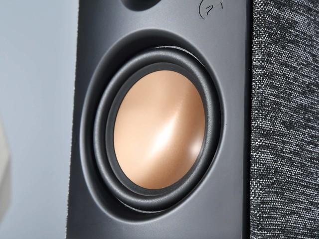 这款惠威OS-10在单元配置上也进行了全面升级。这款音箱配备了一个20mm软球顶“猫眼”高音单元,这颗高音单元振膜采用了20芯通明丝膜材料,单元内部则由铜包铝线音圈配合钕铁硼磁路系统,磁隙内还特别采用高性能液磁冷却,使其能够承受更大的功率,同时也能令驱动系统拥有合适的阻尼。与这颗20mm软球顶“猫眼”高音单元相匹配的是一个4英寸金属中低音单元,单元采用铝胴体锅底搭配天然橡胶折环,铁盆架内搭载了25芯铝骨架铜线音圈和铁氧体双磁路系统。对音频信号的解析出色,瞬态反应迅速。此外,这款音箱还特别加入了防磁设计,进一步确保声音重放真实准确。