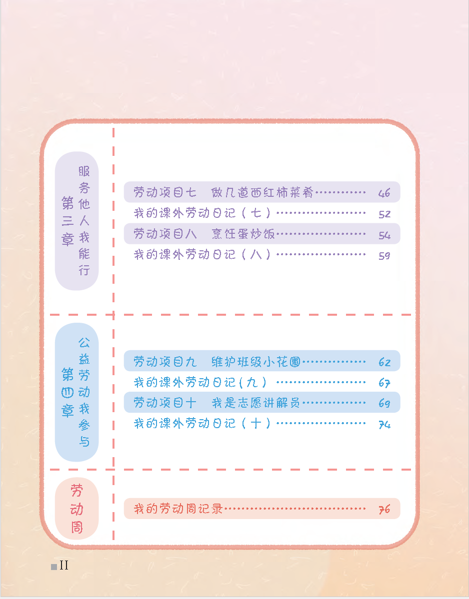 内容要求: 以校园、社区为主,参加1~2项力所能及的公益劳动与志愿服务,利用自身的知识与技能、创造的物质产品与精神产品等,满足他人需要、帮助他人解决问题。