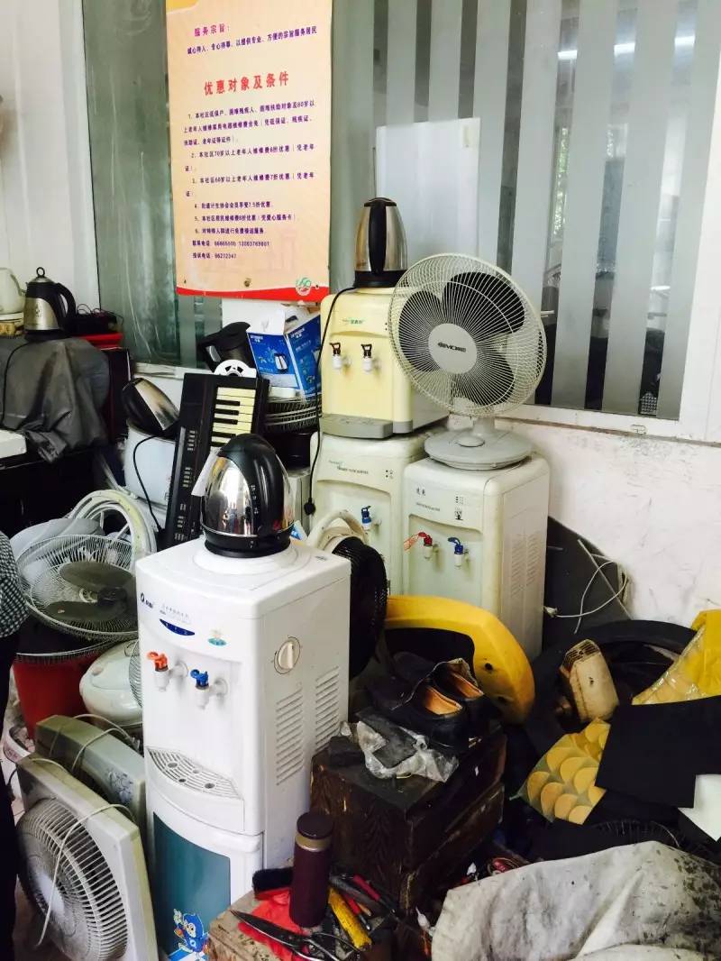 小镇镇走进李安夫的修理室,小小的修理室放满了居民要修的水壶、电饭锅、电扇、饮水机等小家电,李安夫每天早上八点到晚上五点 都在这里“上班”。“我在这里五年啦!”李安夫骄傲地说,是国家培养了我,我现在退休了就好好地服务群众,做些力所能及的事。