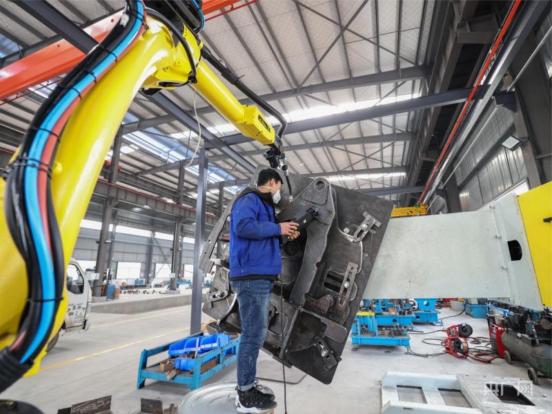 坐落在宿徐现代产业园区内的陆盾机械焊接自动化车间(央广网发 侯磊 摄)