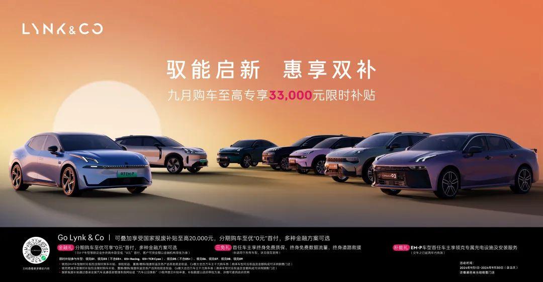 九月购领克汽车至高专享33000元限时补贴,到店即赠精美到店伴手礼一份,首付低至一成,轻松助力提车。
