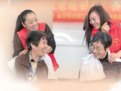 浙江金华经济技术开发区洋埠镇志愿者在洋埠村提供助老服务。胡肖飞摄(人民视觉)