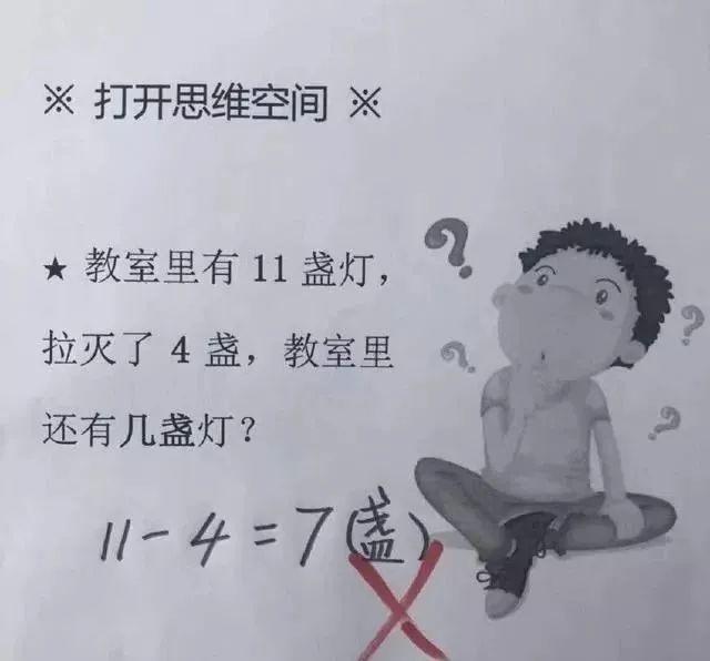 当时,一位小学生的答案是“2”。她的想法是:7个小朋友1个扮演老鹰,1个扮演老母鸡,5个扮演小鸡,在捉到了3只小鸡后,7-1-1-3=2,理应剩下2只小鸡。