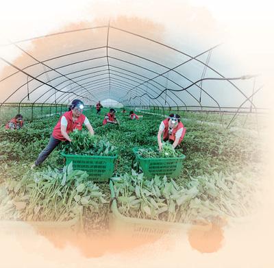 重庆垫江县包家镇党员志愿者帮助菜农采摘蔬菜。王欣悦 向晓秋摄影报道