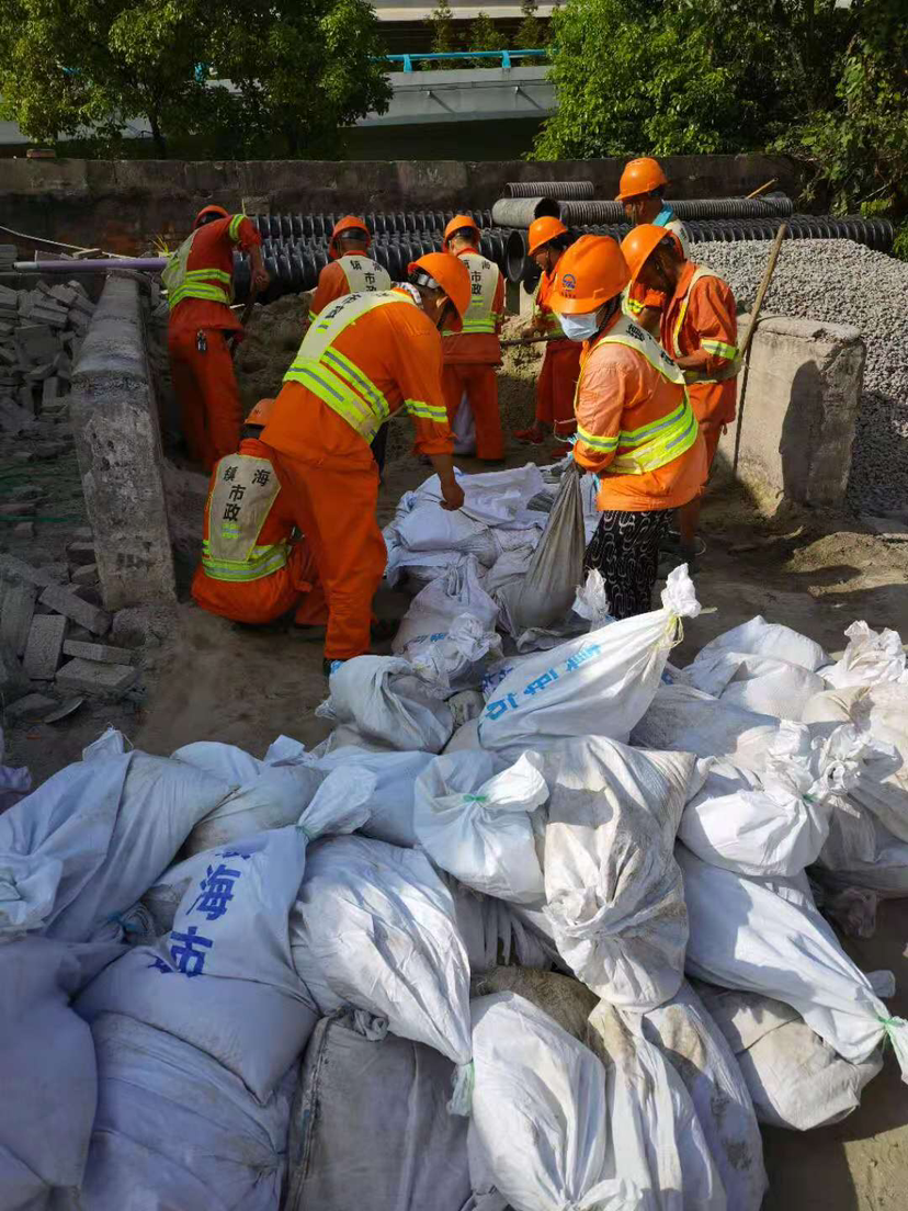 镇海市政公司已强化落实各类抢险装备物资,预备41台强排泵、15辆应急救援车、5台发电机组、约2000个沙包、麻绳等各类应急物资。