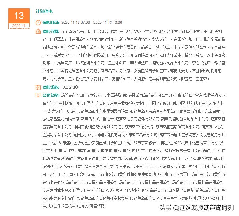 葫芦岛停电信息!最快后天!有你家小区吗?