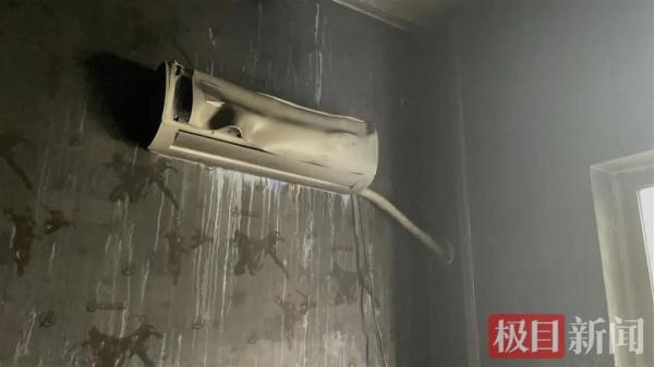 欧保尔倒在三楼左手边的第一间房间,房间的墙壁上,挂式空调因高温的炙烤而变形