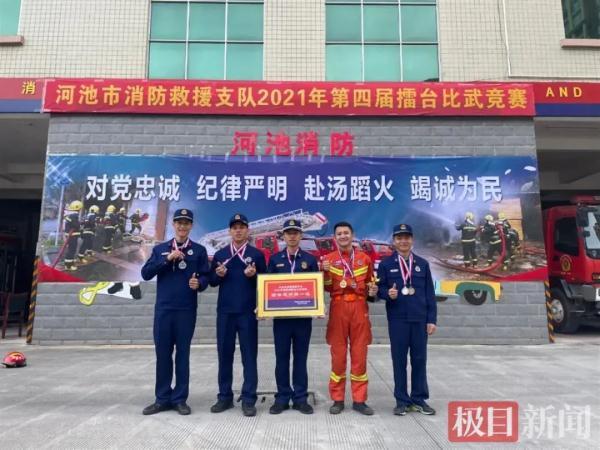 欧保尔带领电都站在河池市消防救援队伍第四季度擂台比武竞赛获得团体第一名